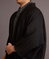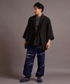 Kimono-style haori in an elegant fabric with a glossy finish. The back is decorated with a back guard embroidery pattern creating a subtle fashionable look. It is oversized with plenty of room to spare, and is recommended for everyday use as well as for wearing over a kimono. The calm Japanese colors are designed for both men and women to wear.