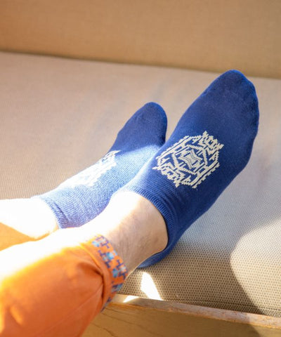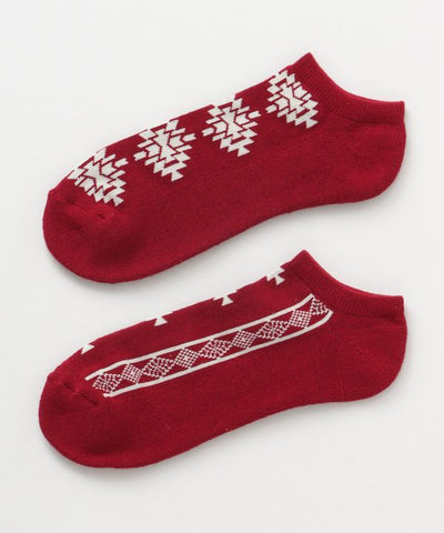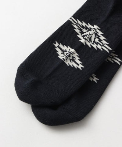 Ankle-length socks with a simple yet distinctive monochromatic native pattern. Original NOMADY series. The thick cushioned soles provide excellent comfort. Receive the energy of nature from your feet.