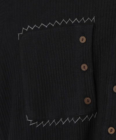 This shirt is made of comfortable cotton. The three-dimensional design has an interesting texture. The pocket on the chest is inspired by shepherd's workwear. The blanket stitching on the collar and pockets is a key feature. A basic shirt that you will want to have at least once. size S.