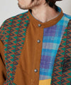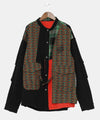 This patchwork jacket expresses the liveliness and vibrancy of a festive night under the theme of Mexico's "Day of the Dead". The front side has a unique vest-style design, making it a one-of-a-kind piece.