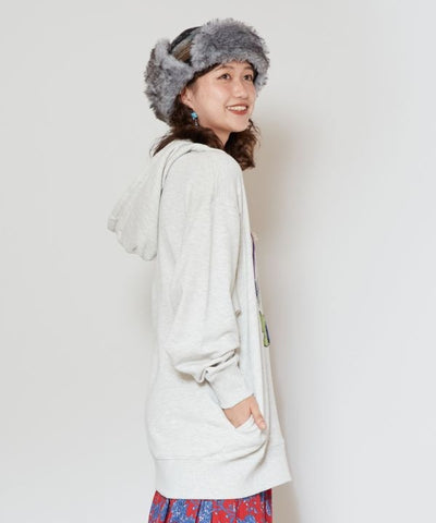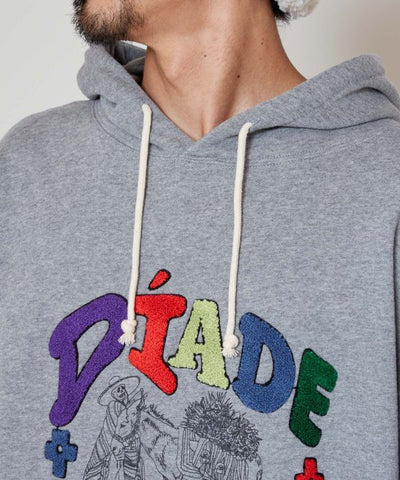 Amina x grn collaboration project. This top features a traveling calavera. The three-dimensional embroidery surrounding the calavera in the center is eye-catching. Firmly lined material. A versatile piece.