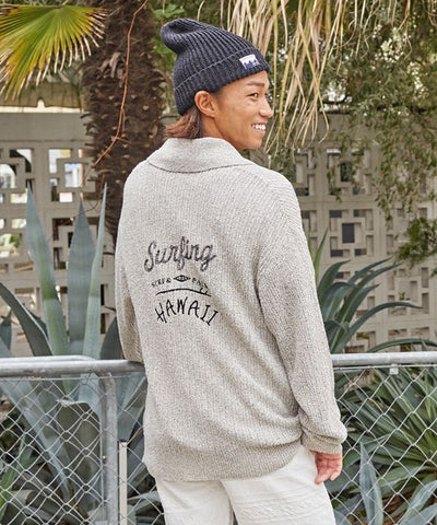 This men's cardigan is made of a knit material that is rough and comfortable. It is lightweight and comfortable to wear even in the Hawaiian sun. The simple design makes it an easy-to-wear piece for any occasion.