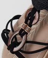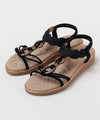 These sandals are reminiscent of walking in a beach resort. The ankle belt is like a naru wave and beads in a tapa pattern are key points. The cushioned comfort makes them comfortable to wear for long periods of time.