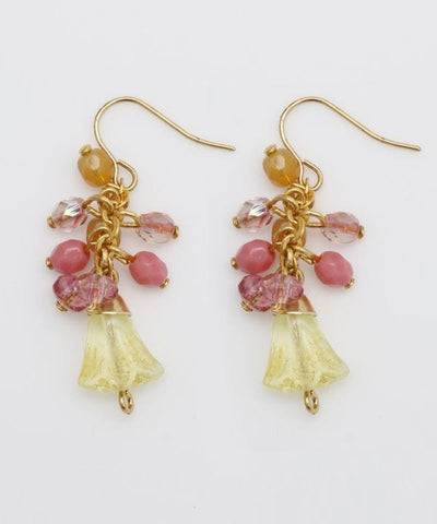 These earrings are made of traditional Czech glass. The design is made up of small delicately colored Czech glass pieces that sway with every movement and sparkle in the light. They add a bright impression to your face.