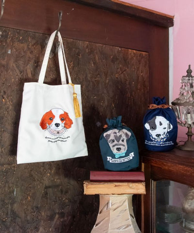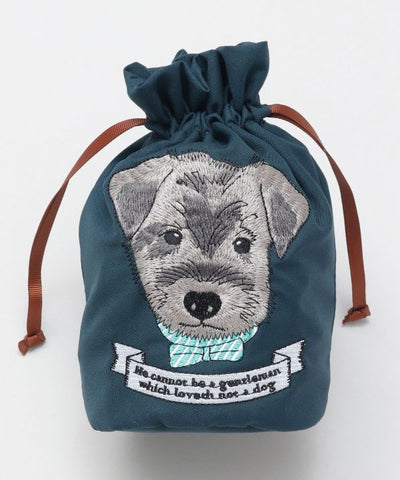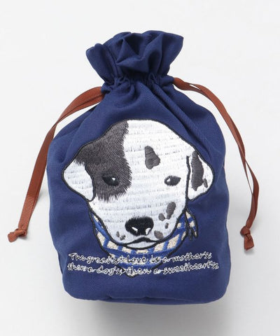 A drawstring pouch with an adorable design of cheerful puppies. Embroidered on the pouch are dogs born in Europe. The English text on each dog is inscribed with words related to dogs written by great European figures. It can also be used for a quick trip with a cell phone or mini wallet. The gusset makes it convenient because it can hold a lot of things and stand on its own. The mischievous design is irresistible to dog lovers and will make you smile.