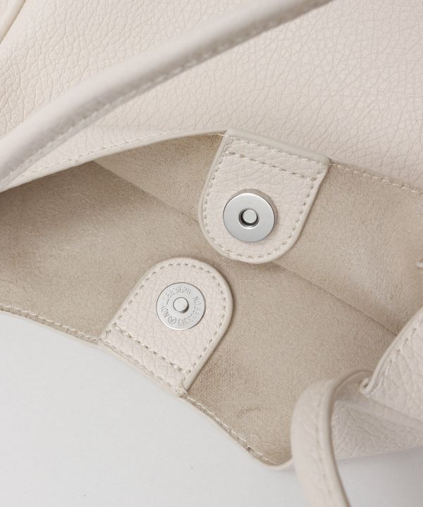 Soft leather tote bag. The basic color makes it easy to match with any coordinates. Snap buttons securely guard the contents. The pouch comes as a set, so you can neatly store the contents of your bag.
