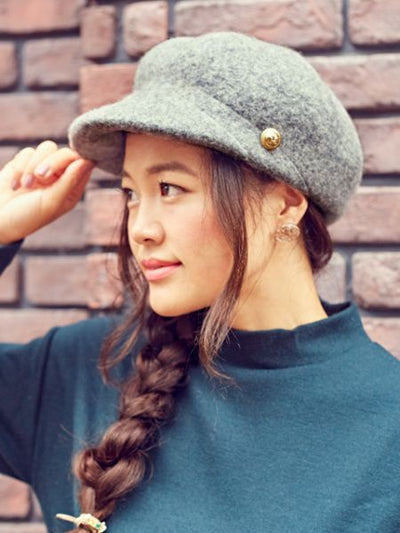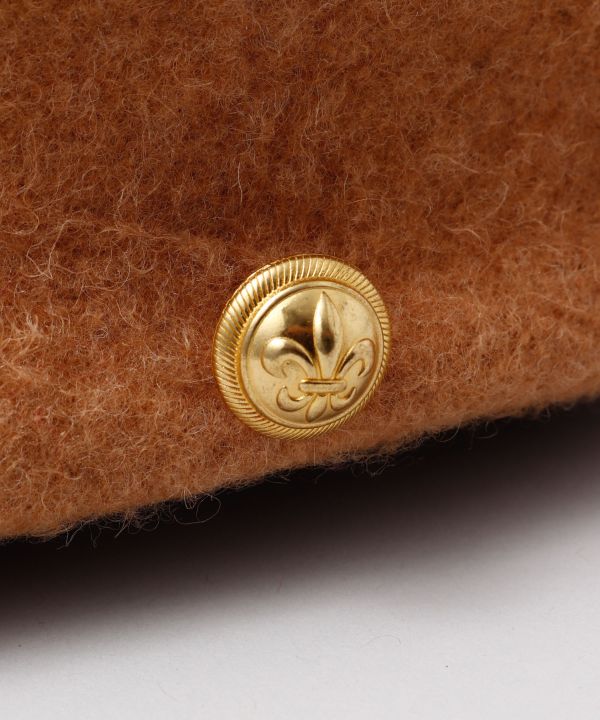 ふわりとしたシルエットが可愛らしいキャスケット。フランスのユリの紋章「フルール・ド・リス」がワンポイントで輝きます。優しくて暖かな印象のカラーリングがコーディネートをより一層引き立てます。