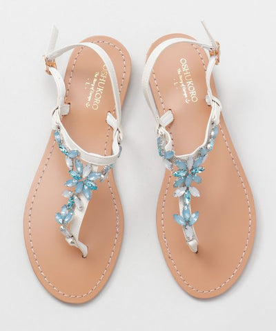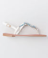 These sandals are inspired by Capri sandals made on the island of Capri in southern Italy. The sparkling parts give a cool impression. The cushion-free insole is flat and easy to walk on creating a sharp silhouette.