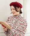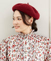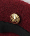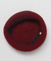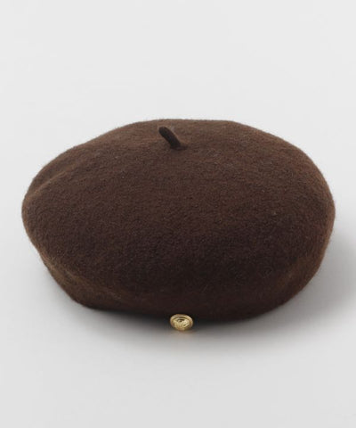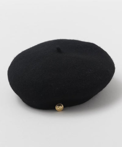 A stylish beret with a warm wool texture. The basic coloring is easy to coordinate with your outfit. The elasticized opening fits snugly on the head. The button with a fleur-de-lys design on it shines brightly.