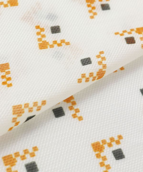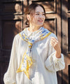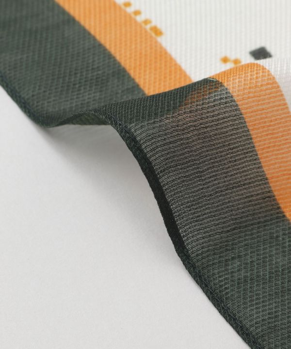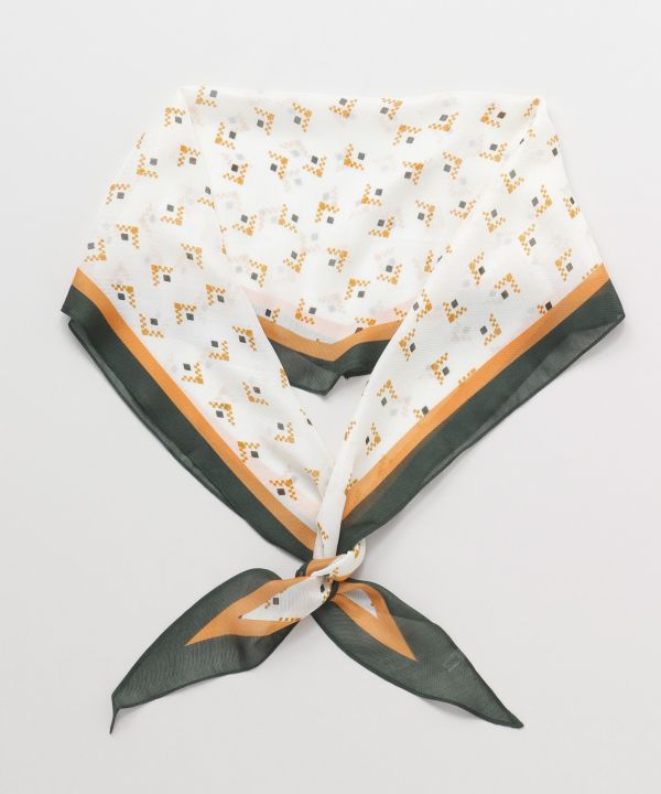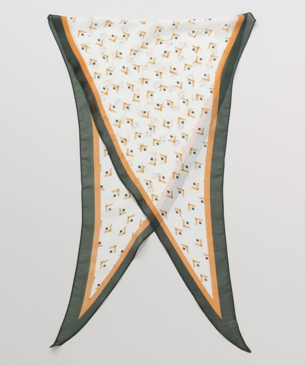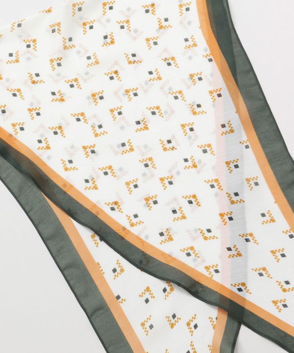 This long scarf has a unique diamond-shaped design. The silhouette of the scarf when wrapped around the neck looks beautiful and clear. It upgrades even a simple coordinate. A must-have item to keep in your bag.