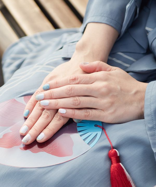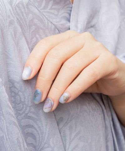 Beautiful nail stickers that look like blotting watercolor paints. The transparent coloring will add a cool touch to your fingertips on a summer day. The flowing gold lines create a more mature look. The stickers are not easily peeled off if a top coat is applied and you can enjoy the plump texture. The Japanese motifs are easy to match with kimonos and yukatas, making them perfect for many scenes.