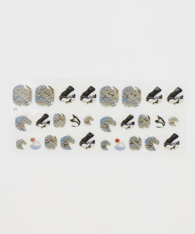 Stylishly dress up your fingertips. Gel-like nail stickers designed with high-impact Japanese ukiyo-e prints. By applying a topcoat the stickers are hard to peel off and have a texture similar to the real thing. The shiny, plump stickers accentuate your femininity. *A nail file is included.