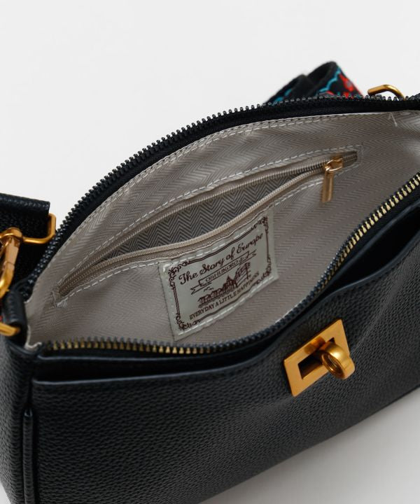 Shoulder bag featuring Romanian-inspired cross-stitch embroidery and Ukrainian floral motifs. The ethnic-inspired color palette adds a striking accent, and the removable strap allows it to be worn as a clutch. A statement accessory blending folk artistry with modern versatility.