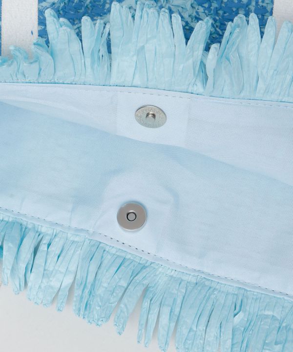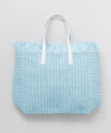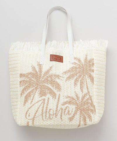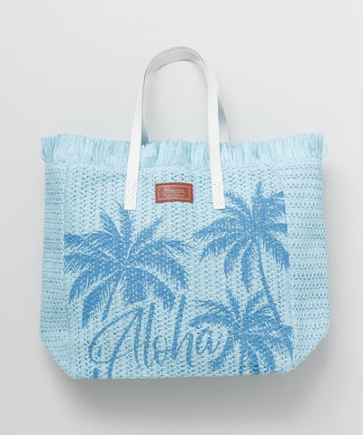 Tote bag made of light paper material. The large palm tree design and fresh colors are key points. It is perfect for everyday use such as shopping, as well as for going to the beach.