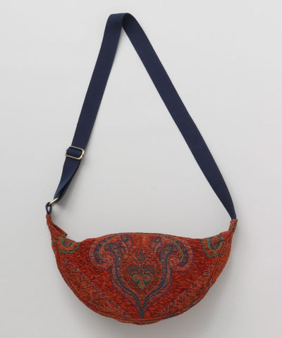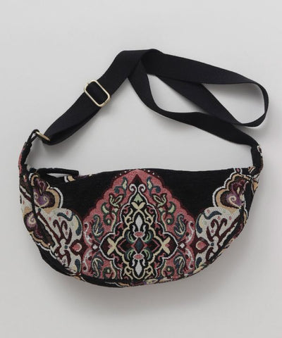 This crescent-shaped bag adds a touch of glamour to your everyday look. Velvet jacquard fabric reminiscent of vintage Turkish rugs. The thick gusset allows you to carry more than it looks. Also recommended as a travel companion.