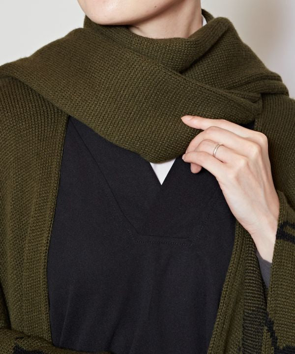 Knit Haori with scarf. The ATTAKEE series is produced in the famous knit production area of Mitsuke City Niigata Prefecture. The size allows you to wear it loosely over a Kimono. It is warm around the neck, and is perfect for protection against the cold while enjoying fashionable clothing. The vine and grass design on the left and right sides adds a noble touch.