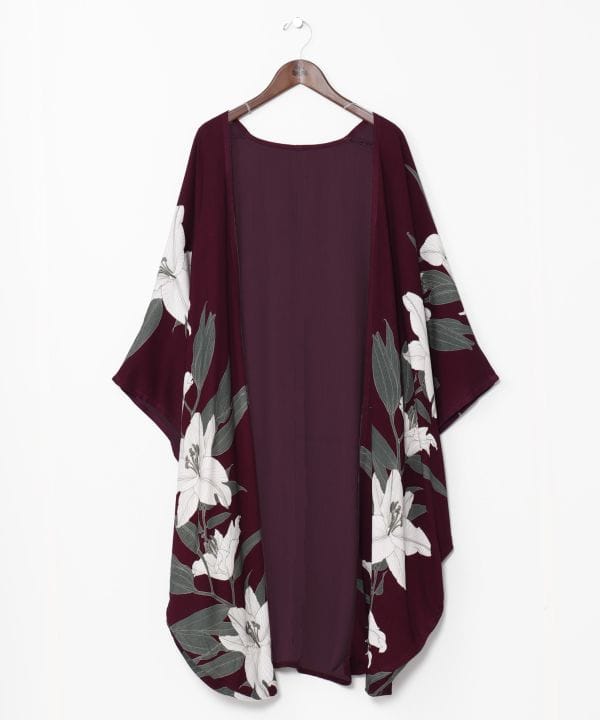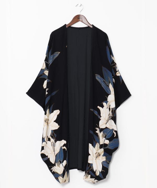 Furisode-style haori with a design of lilies in a row. The relaxed shape allows you to wear it without worrying about your figure. The silhouette is long enough to cover the hips. The soft rayon material is comfortable to the touch.