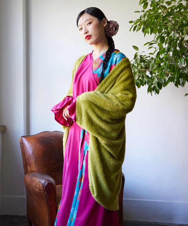 Cardigan in shaggy fabric with long fur. With a fluffy feel and a length that covers up to the hips, this cardigan has excellent wearability. With its wide sleeves and momonga silhouette, it is a piece that is sure to be active in a variety of situations without choosing an inner layer.
