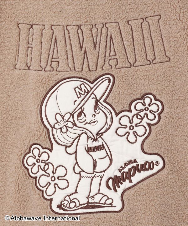 Kahiko x Aoha Mapua collaboration project. A collaboration with a platinum blonde girl Mapua, who loves surfing and fashion. This fluffy boa jacket makes you want to touch it unintentionally, and is recommended for both surf style and Mapua lovers.