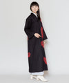This one-piece dress is boldly designed with a single flower motif. The design is simple yet impactful and we recommend wearing it as a set-up with a haori from the same series. The wrinkle-resistant material and loose silhouette make it comfortable to wear, and the kimono-like matching collar allows you to easily incorporate Japanese elements. With pockets on both sides.