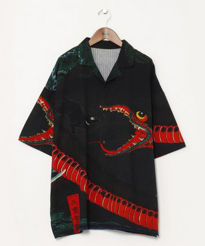 Wearable NIPPON ART: Japanese-style aloha shirt redesigned from ukiyo-e prints. Cotton dobby fabric with a texture like sashiko is used. A wide variety of patterns are available, including popular skulls, cats, phoenixes, and rabbits. Available in two sizes, M and L. Unisex design.