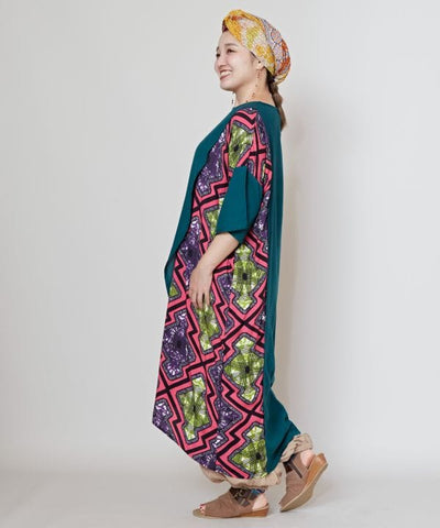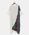 This dress features a fun plain and patterned transitional design with an African kitenge motif pattern. The silhouette can be changed by tightening the side ties. The rayon material makes this dress easy to wear. Rafiki means "friend" in Swahili.
