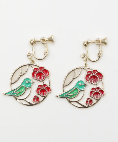 These stained glass-style earrings feature flowers reminiscent of the four seasons in Japan. It comes with a special box, so it is recommended as a gift.