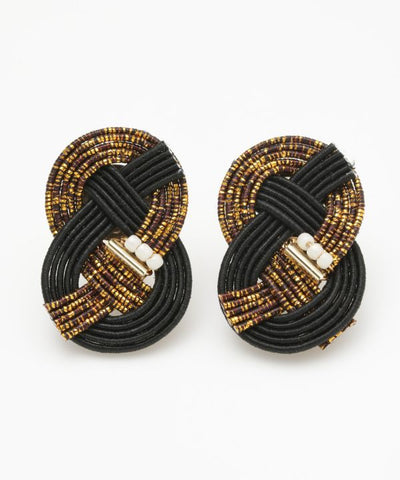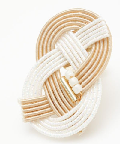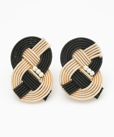 2色の水引を重ね合わせたイヤリング。艶やかに輝くビーズがワンポイントに。耳元を上品に輝かせます。