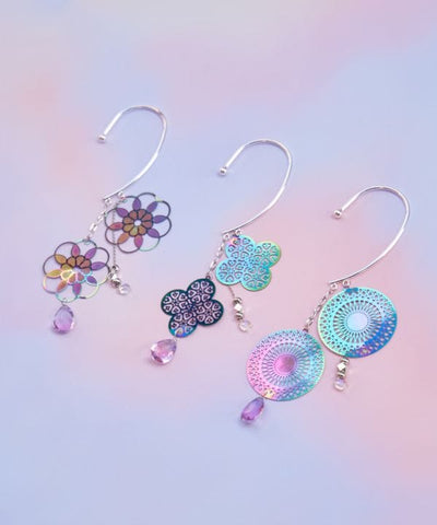 The large ornament shakes gorgeously around your ear. The aurora-like colors of these ear hooks are beautiful. The earhooks do not require pierced holes and can be easily enjoyed by simply hooking them on, broadening the range of coordination.
