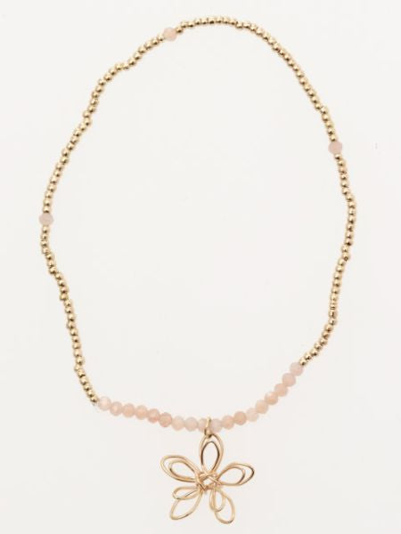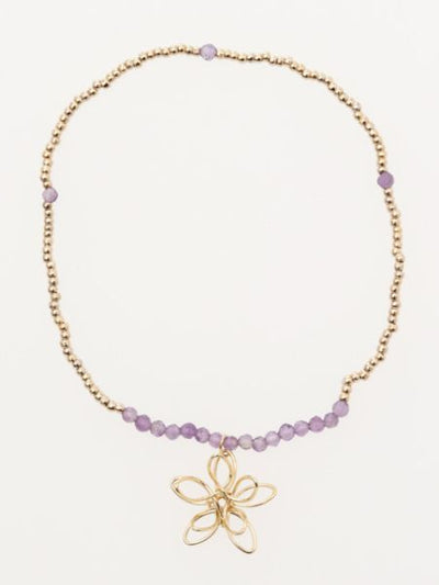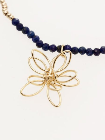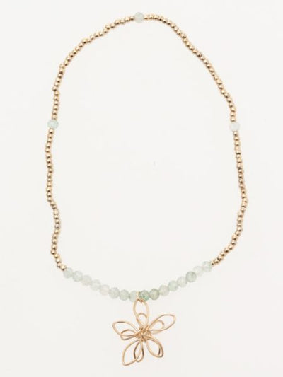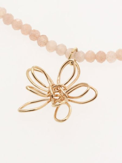 手元で揺れる花が特徴の華奢な腕輪。小粒の天然石と真鍮を組み合わせ、上品ながらもどこか可愛らしく仕上げました。