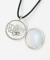 The language of flowers is unmoved heart. Lotus has long been associated with Buddhism and has been a symbol of good fortune longevity, and honor. This necklace combines the lotus with power stones. This item can be carried as both an accessory and a good-luck charm.