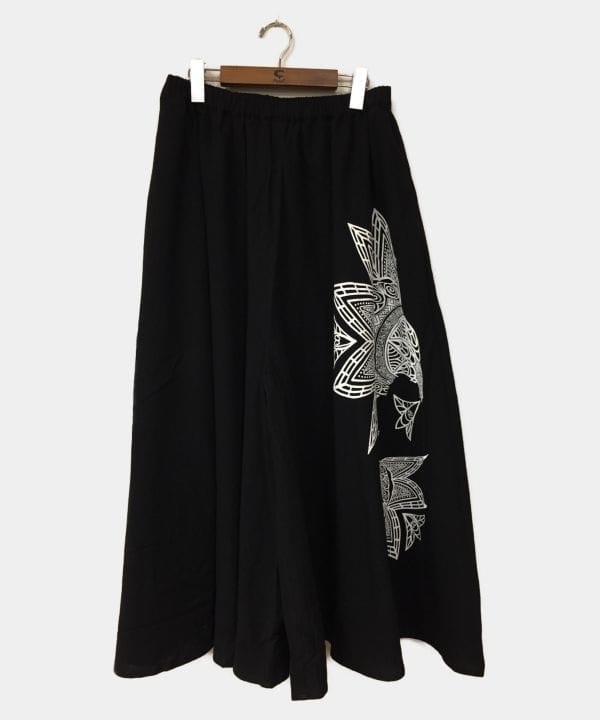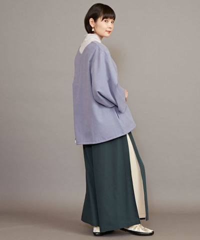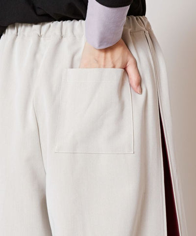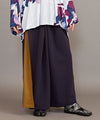Hakama style wide pants in elegant fabric. Firm and heavy fabric is used. A glimpse of color on the side creates a hidden fashionable look. Also goes well with a dress.