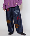 Pants inspired by the Kilim of the Kurdish people. The design features embroidery/weaving/silversmithing. The Kurdish people are a nomadic tribe whose name comes from the Persian word for "nomad tent dweller. This item is made of soft denim fabric that is easy to move in, upgrading their mindset to the tent life of today. The thicker silhouette makes it possible to wear underneath.