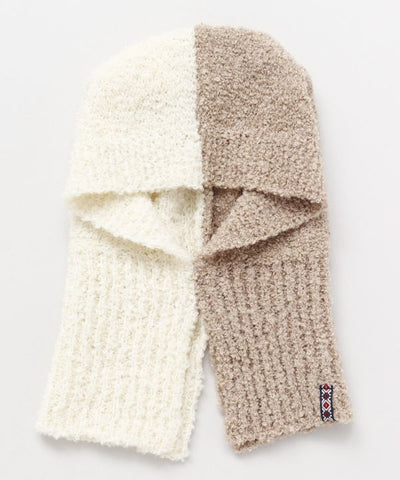 Balaclavas are now available! Just by adding it to your regular clothes you can broaden the range of your coordination. Simple but unique. The pukpukku texture is soft to the touch, and the bicolor design is similar to the color of the balaclava. The woven tape with a navy pattern adds an accent. Can be worn with the hood up. It is also warm enough to be worn as a collar with the hood removed.