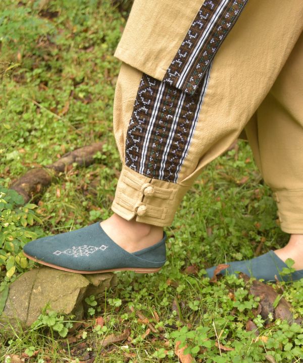 These cowhide Moroccan babouche shoes are inspired by fez embroidery, a traditional craft in the city of Fez, the capital of Morocco. The heeled style is perfect for trendy outfits. You can also wear them with the heel up.