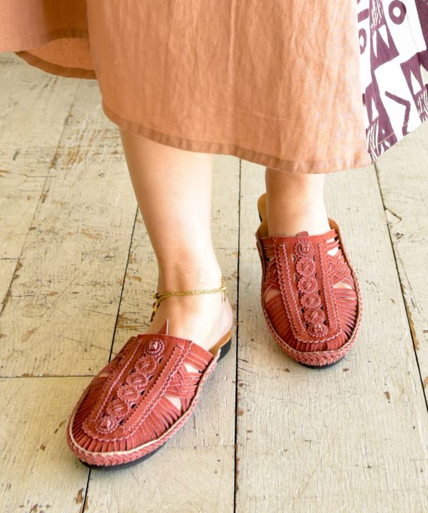 These goatskin sandals are inspired by the Sahara Desert in Africa. The Sahara Desert, with its crushed rocks, orange-colored deserts, and oases, is a place where you will be reminded of the many different faces of the desert. We want you to feel the power of nature as you travel. The chappal-like weave design is breathable, and the goatskin leather becomes more comfortable the more you wear them.