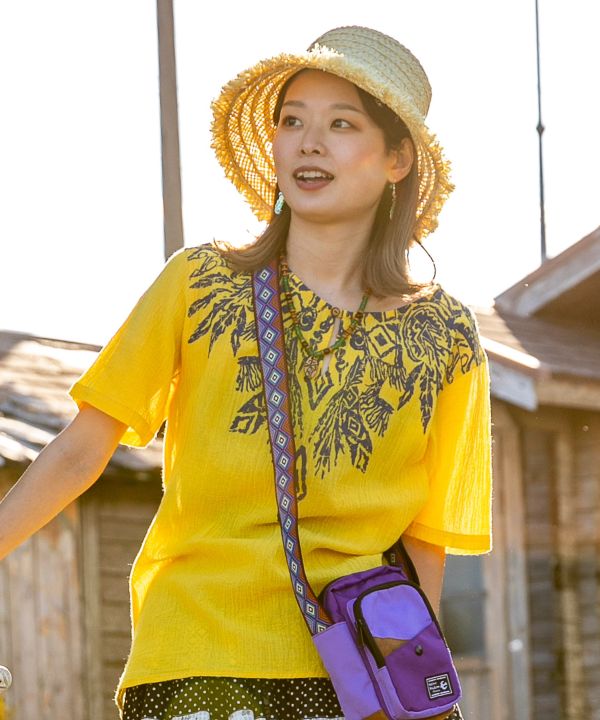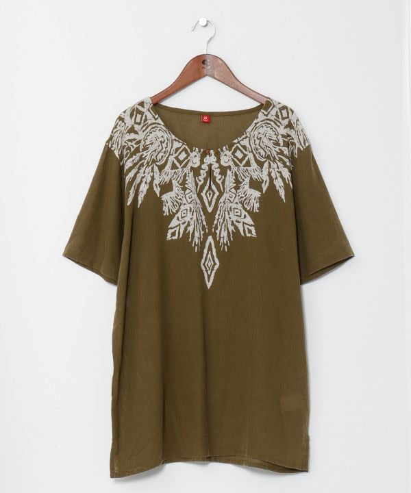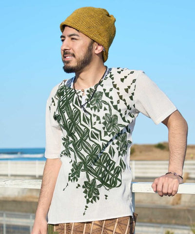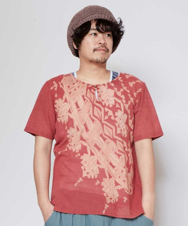 This men's top is designed with various tribal patterns. The Indian cotton material is soft to the touch and airy, allowing you to stay cool in the summer. A piece that comes in a variety of colors and patterns, so you will want more than one. It is suitable for unisex for both male and female.