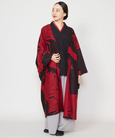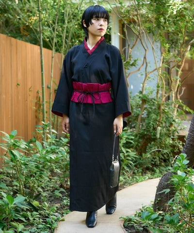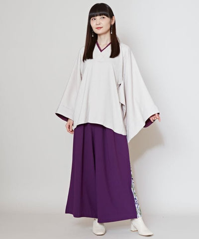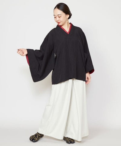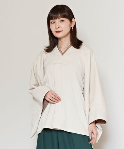 This impressive top features jacquard fabric around the collar and cuffs. By combining it with a skirt from the same series you can easily enjoy a kimono-like styling. The jacquard fabric has a flowing water motif pattern, giving it an elegant and gorgeous impression. Recommended for both special occasions and everyday wear.