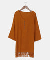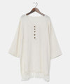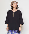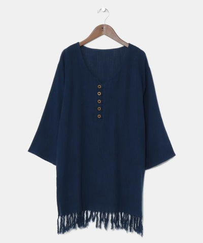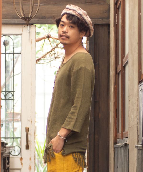 Fringe top in textured rough Indian cotton. It goes well with coordinates with a natural atmosphere. Its simplicity allows it to be used in a variety of coordinates. This is a unisex item that can be worn by unisex both women and men.