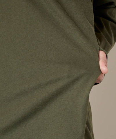 Amina x Sukkama in the Forest. Sukkama is a sauna in the Korean style. It means a charcoal oven in the forest. This relaxing wear is a reproduction of indoor wear for both men and women. This long T-shirt made of soft cotton is suitable for everyday wear and outdoor activities. Available in M and L sizes.