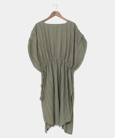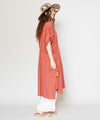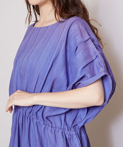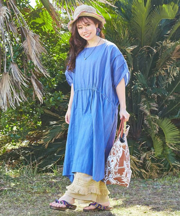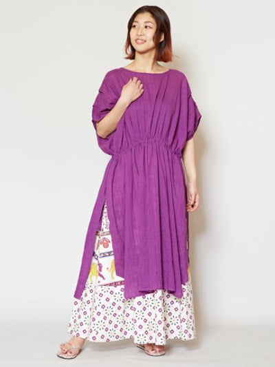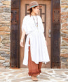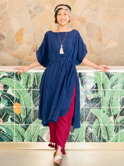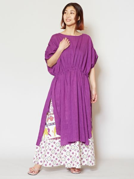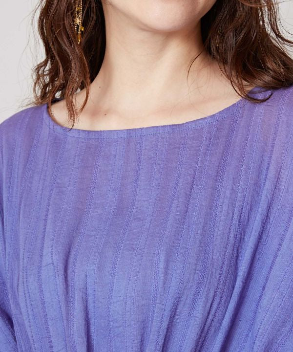 The way it flutters in the wind attracts me. The bold slit in this long top gives it a summer resort look. The soft and fluffy cotton material with a striped dobby pattern gives this piece a rich expression. It is easy to match with any bottoms and brings out the individuality of the wearer.