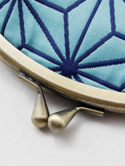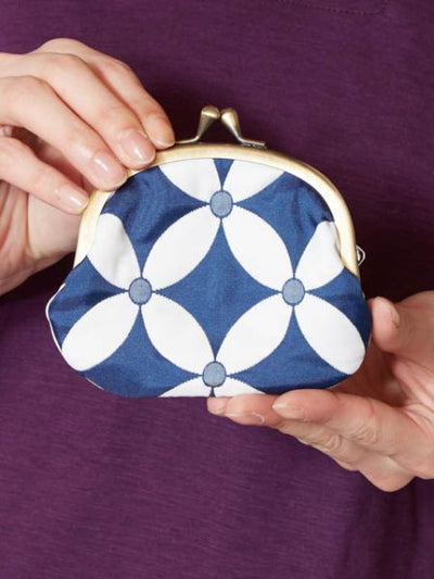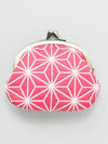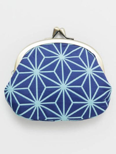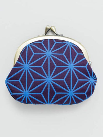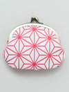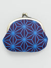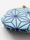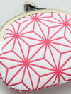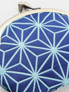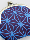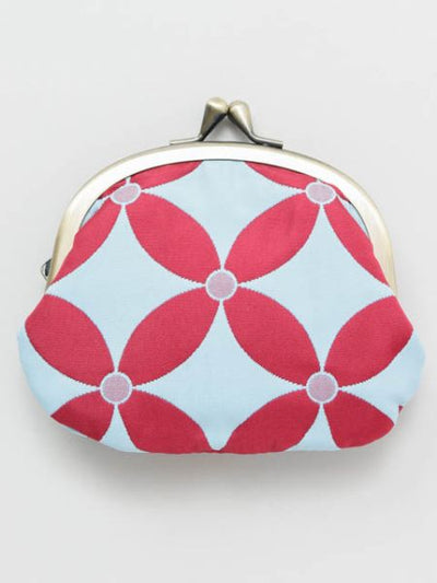 The "Fukure-ori" fabric, a three-dimensional weave with colors reversed on the front and back surfaces, is used. This elegant Gamaguchi is a redesign of a traditional Japanese Komon pattern. The small size is perfect for small items or coin purses.