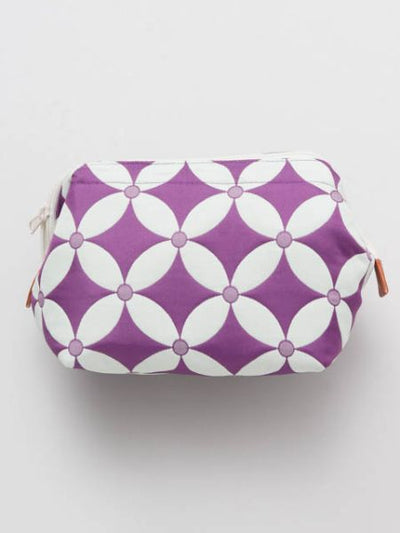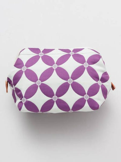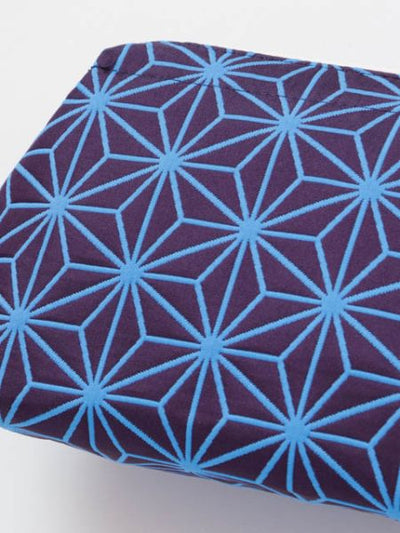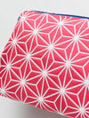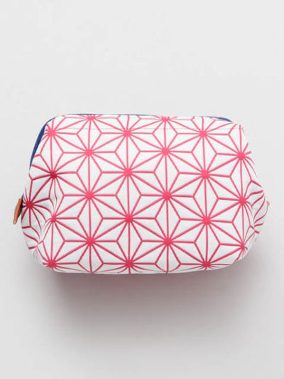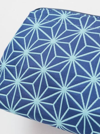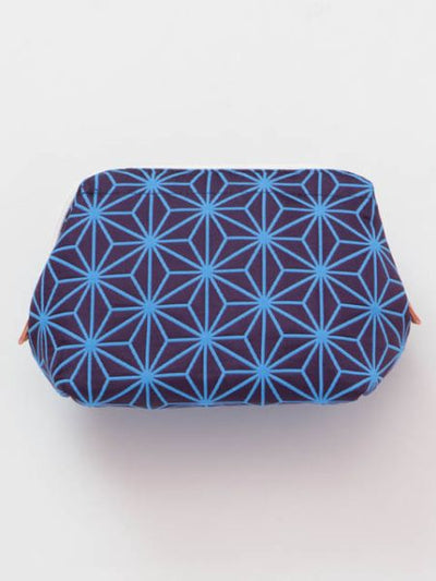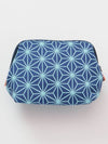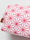 Fukure-ori a three-dimensional woven fabric with colors reversed on the front and back surfaces, is used. This elegant pouch is a redesign of a traditional Japanese komon pattern. The wired mouth opens wide for convenience. It is an easy-to-use pouch with an inside pocket.
