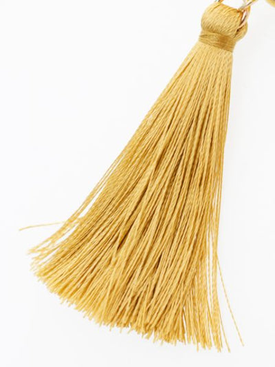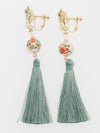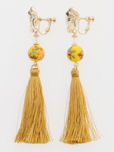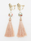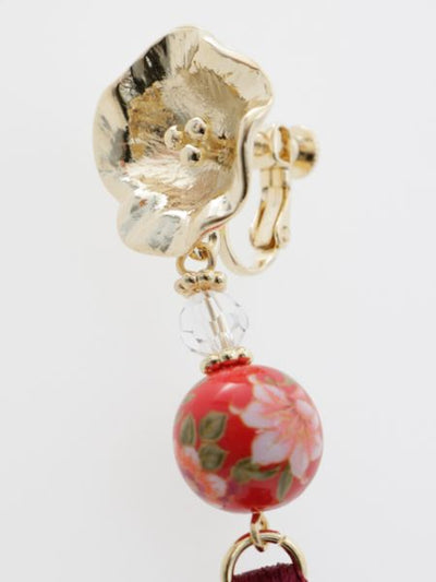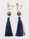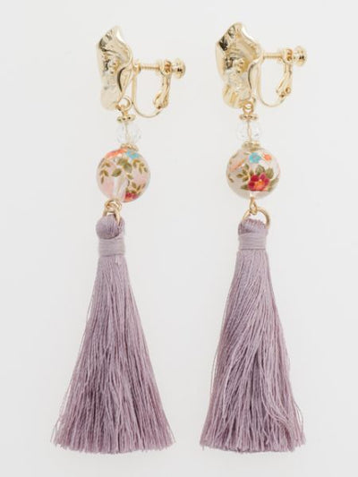 Gold Kikyo flower and Japanese color tassel earrings. The tassels sway as you walk, creating a feminine impression. The colorful Kikyo-patterned round ball parts are also eye-catching.