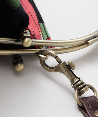 This is a shoulder bag with a clasp closure redesigned with the flowers depicted in Jakuchu Ito's painted ceiling "Flowers and Plants". The handle is a clasp, and when you open it, the mouth opens wide, making it easy to see what's inside. It also comes with an inside pocket for smaller storage.