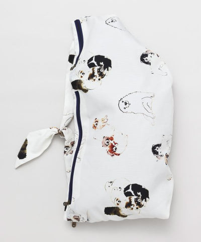 A new style bag with a silhouette that looks as if it is draped over a furoshiki cloth. The polyester material makes it light and easy to carry. Two small pockets with zippers on the side can be used for storing coins, cell phones, etc. It is sure to be useful in active situations, such as going out on a bike ride.