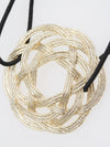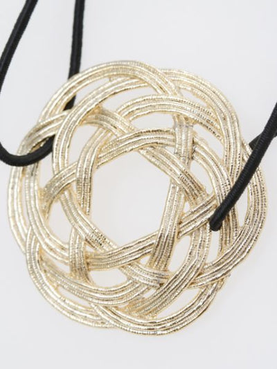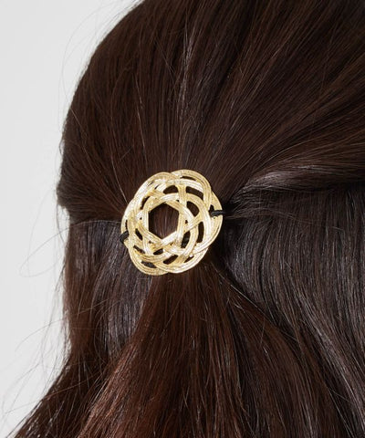 Hair bands with Mizuhiki motifs used in Japanese celebrations. The kesa-knot is part of the Shutara knot used as a decoration for Buddhist monks. The Roppo-Ojime-knot is an auspicious knot that incorporates the Awaji-knot. The awaji-knot is said to tie "Karma" firmly because it cannot be untied. It is made with a thin elastic.