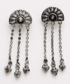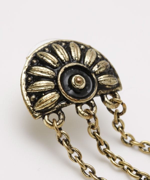Earrings with a floral motif on a semicircle. The swinging motifs are eye-catching.