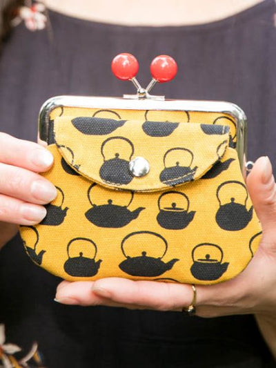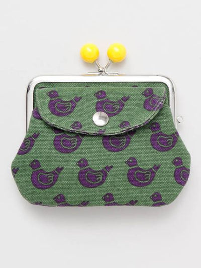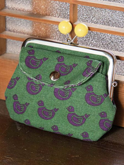A slightly nostalgic retro pattern. The thick and durable canvas is hand-dyed by craftsmen in Kyoto. The parent and small Gamaguchi clasp purse is convenient and holds plenty of coins.