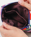 This multi-pouch is designed with motifs from around the world. With three large zippered pockets it is an excellent way to neatly organize the inside of a bulky bag.